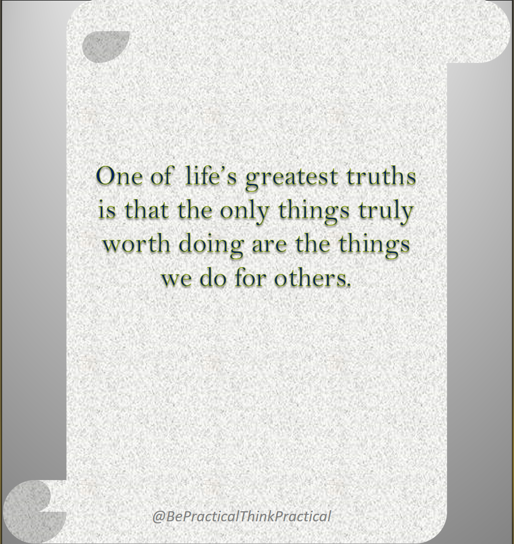 One of life’s greatest truths is that the only things truly worth doing are the things we do for others.